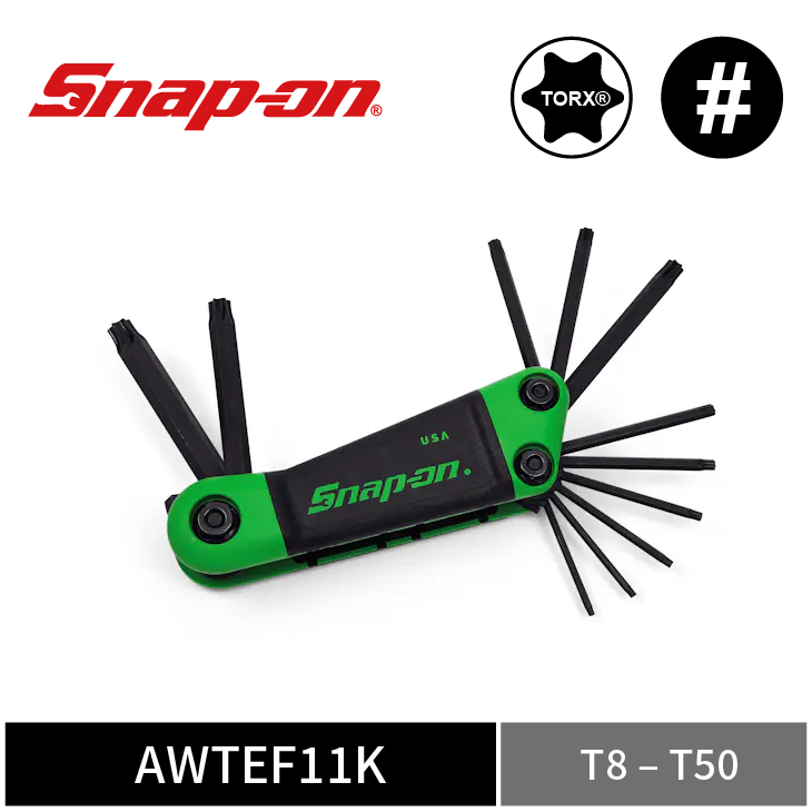 Snap-on 11件式 TORX® 折疊式星字六角扳手組 (T8–T50)