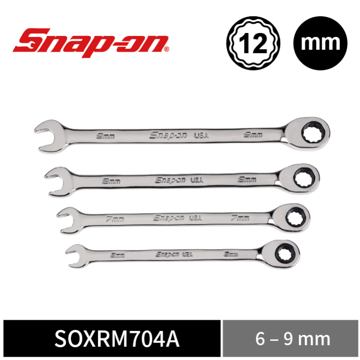 • 4件式:6 - 9 mm 扳手組,附工具收納盤 • 開口端採用 Flank Drive® Plus 專利設計,可緊密夾合螺栓,防止打滑與滑角,扭力提升62%,讓作業更省力 • 採用Snap-on® Dual 80® 專利的80齒單向棘輪技術,有效縮短每次擺動角度,在狹窄空間內也能順暢操作 • 以高強度合金鋼製成,經精密鍛造與熱處理,確保優異的強度與耐用性