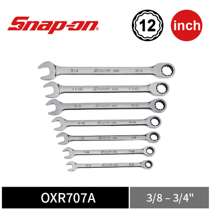 Snap-on 7件式 英制 Flank Drive® Plus 0º 單向棘輪梅開扳手組 (3/8–3/4")