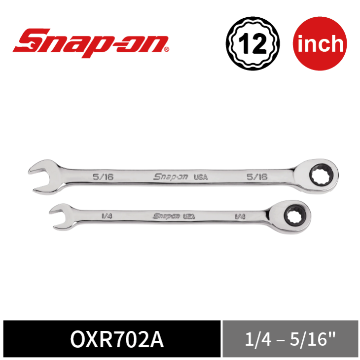 Snap-on 2件式 12角 英制 Flank Drive® Plus 0º 單向棘輪梅開扳手組(1/4"、5/16")