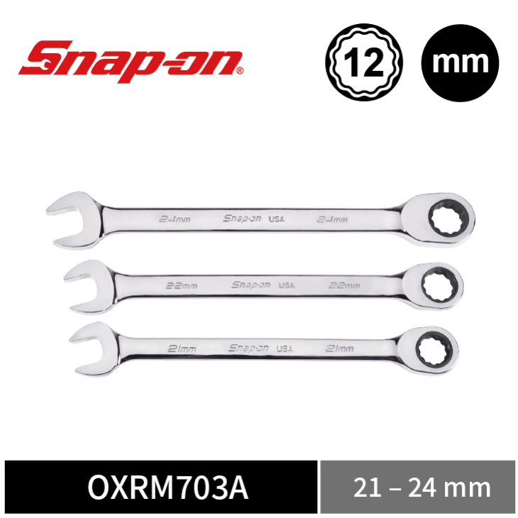 Snap-on 4件式 12角 公制 Flank Drive® 0º 單向棘輪梅開扳手組 (6–9 mm)